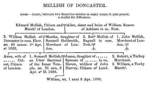 The Mellish family were originally merchants in London, Lincoln and Doncaster. In 1635 John Mellish of London purchased the Blyth estate from the Saundersons, but he did not move there. He was succeeded by his eldest son Edward Mellish, at one time merchant at Oporto. Edward Mellish rebuilt Blyth Hall in the 1680s. He died unmarried in 1703 and left his estate at Blyth to Joseph Mellish (d. 1733), the son of his cousin Samuel Mellish (d 1707). Joseph's son William undertook extensive work on the house at Blyth and the estates.